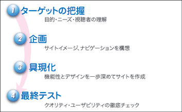 UCD(User Centered Design:ユーザ中心設計)を中心的概念に、誰にでも使いやすく、わかりやすいサイト作成を目指します。その方法として、